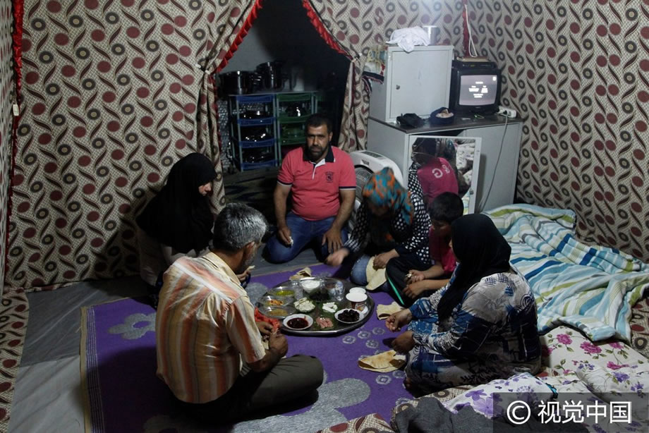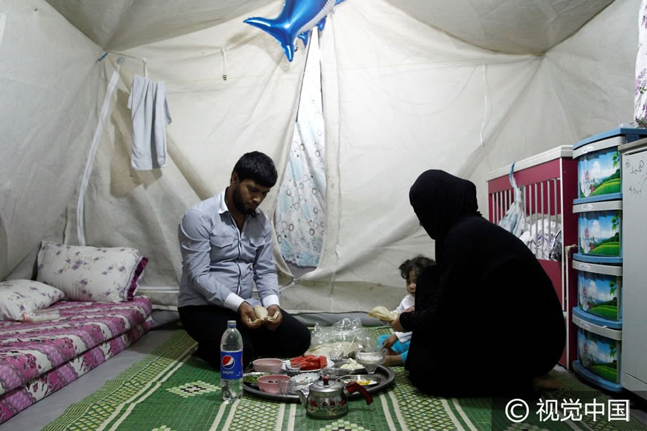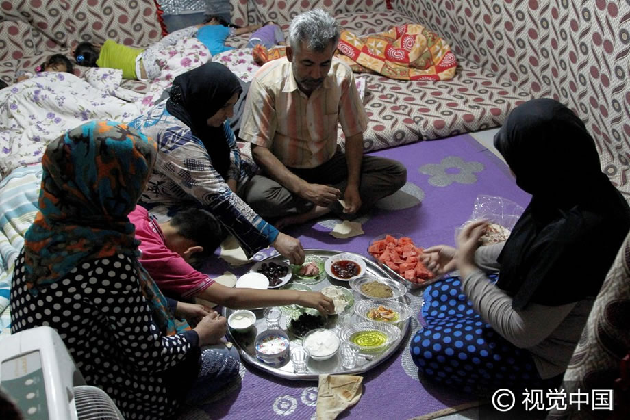 敘利亞難民帳篷中迎來齋月 視覺中國 2016-06-08 11:52:05 瀏覽 當地時間2016年6月6日,土耳其卡赫拉曼馬什拉,敘利亞難民在帳篷裡吃第一頓封齋飯。2016年穆斯林齋月從當天開始。 圖片來源:Anadolu Agency/Getty Images/視覺中國