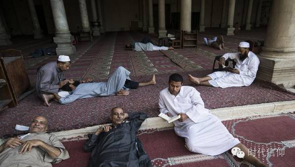埃及首都開羅,幾名穆斯林在一處清真寺內誦讀《古蘭經》