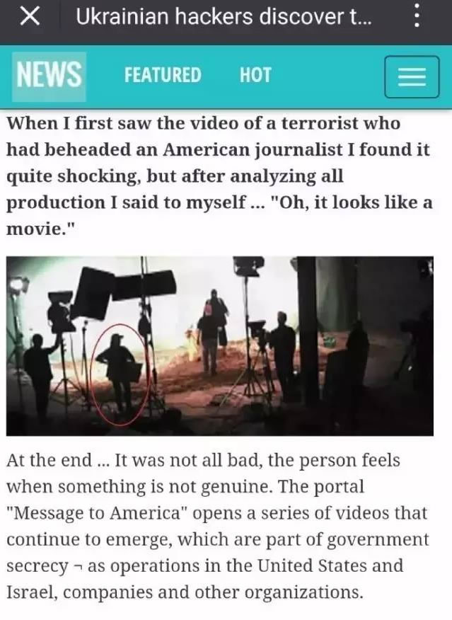 從去年到今年歐洲發生了四次恐怖襲擊,其中三起事後都由伊斯蘭國申明負責。在前面的文章中血飲已經說過,伊斯蘭國組織是美以合作培養的怪胎,而主要目的就是説明清除猶太資本集團控制中東石油的絆腳石。自從法國奧朗德政府上臺以後,它又多了一個撕咬法國的重任。伊斯蘭國的手段是殘忍的,特別是在去年十一月份的恐怖襲擊事件上,這些畜生拿著高檔專業軍事器材殺人的時候,顯得非常從容,殺人在他們眼裡就跟去街上買菜一樣。而最近出現的大事件,則讓美國中情局與伊斯蘭國的勾結徹底暴露。七月十二號烏克蘭駭客發佈消息他們侵入美國參議員麥凱恩的筆記型電腦,這個麥凱恩就是和伊斯蘭國成員合影的哪位美國共和黨參議員。侵入電腦後發現一段視頻,在視頻裡中情局的工作人員正在攝影棚裡佈景,而拍攝的則是美國記者被伊斯蘭國斬首的內容。文章認為視頻中的美國記者應該是詹姆斯弗利。