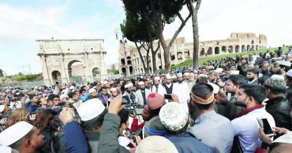 本週五,數百名義大利穆斯林在羅馬角鬥場外集會示威,抗議義大利政府對穆斯林宗教自由的限制。