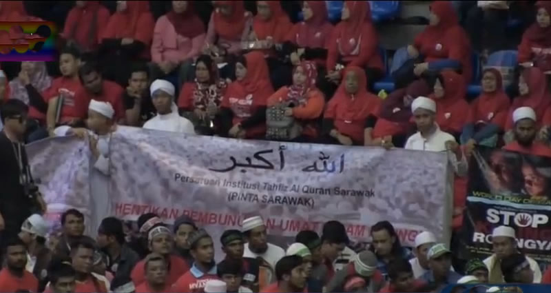 納吉布總理在集會中發表講話時稱:“今天,我們全馬的所有穆斯林都倍感自豪,因為我們是為了維護人道主義精神而聚到了一起,是為了聲援那些生活在水深火熱之中的緬甸穆斯林兄弟姐妹們而聚到了一起。”