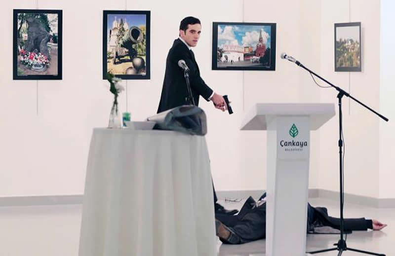 12月19日,土耳其安卡拉,俄羅斯駐土耳其大使卡爾洛夫在參加活動時遭一名土耳其員警槍擊,後不治身亡。