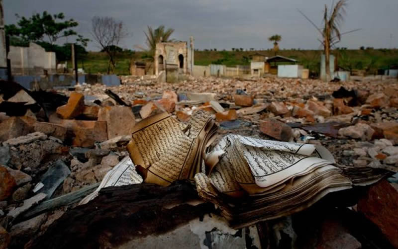 網路上曾流傳兩組關於緬甸穆斯林聚居區若開邦地區的高清衛星照片。兩組照片都拍于清晨時分,第一組拍於2014年,這組照片展示了當地穆斯林少數族裔所居住的村子,其中包括數百座位于一個小樹林與一條土路之間的房屋;第二組照片拍於近兩個月,我們可以清楚地看到,上一組照片中的房屋都已夷為平地,剩下的只是一整塊焦土。