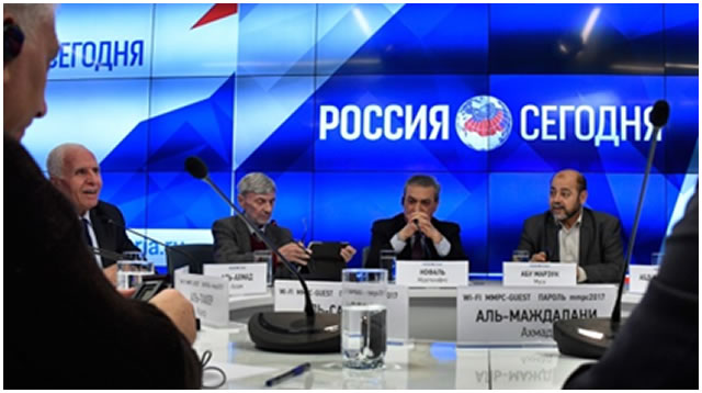 巴勒斯坦民族解放運動(法塔赫)與巴勒斯坦伊斯蘭抵抗運動(哈馬斯),兩派代表在莫斯科舉行會談,經過三天緊密磋商,於星期二(1月18日)會議結束時雙方發表聯合聲明:兩派同意共同建立團結政府,一致對外。這個協定也向所有巴勒斯坦愛國組織開放,敞開大門,歡迎他們隨時加入,壯大力量,實現祖國統一目標。