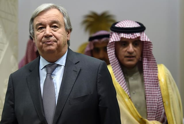法新社報導,古特瑞斯與沙烏地阿拉伯國王沙爾曼、王儲兼內政部長穆罕默德‧納衣夫(Mohammed bin Nayef)與副王儲穆罕默德.沙爾曼(Mohammed bin Salman)會談後告訴記者這項看法。