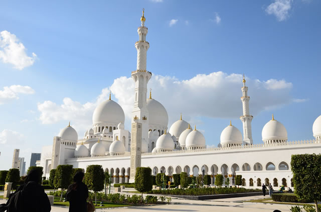 阿布達比大清真寺,正式的名稱是謝赫·紮耶德清真寺,是以阿聯酋國父稱號命名。 該寺建於2007年,是現代規模最大、造價最高的清真寺,占地兩萬兩千平方米,可容納四萬人禮拜。 主體建材全部使用義大利特產的優質漢白玉,單是石材一項就耗資十億美元;禮拜殿上鋪著五千平方米整片的紐西蘭純淨羊絨地毯,由伊朗地毯工藝廠編織。 自從竣工日起,就一直對外開放,每年接待客人平均五百萬,成為阿聯酋地區一流的旅遊景點。