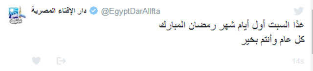2017年5月26日星期五(伊曆1438年8月29日),埃及穆夫提紹基·阿拉曼電視直播觀月通告: