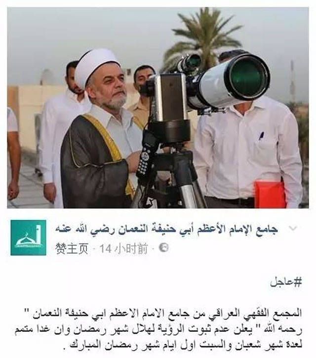 伊拉克大伊瑪目清真寺在25日晚觀月後發佈消息稱,未見新月,因此宣佈:26日全面舍爾巴月第30天,5月27日是入齋第一天。
