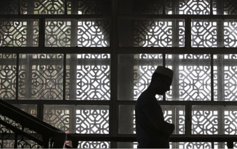 香港尖沙咀九龍灣清真寺,一名男子正在禮拜。