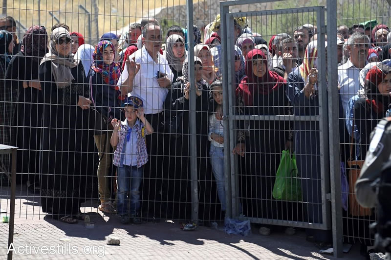 2017年6月21日,來自約旦河西岸地區的巴勒斯坦人在蓋蘭迪耶檢查站外排隊等候檢查。