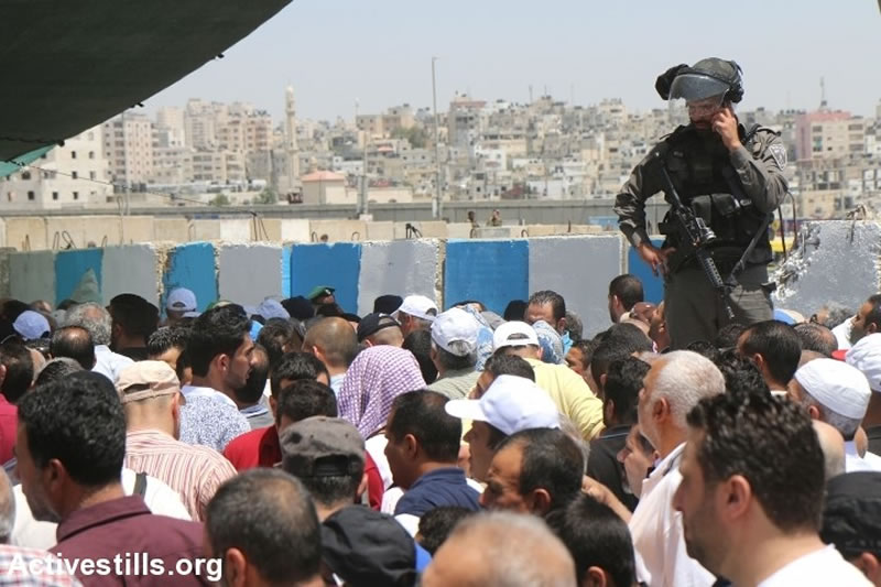 萊麥丹齋月的最後一個主麻日,巴勒斯坦人守候在耶路撒泠南部市鎮伯利恒第300號檢查站,等待以色列軍方的例行檢查。