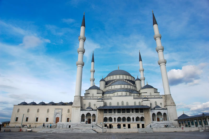 土耳其首都安卡拉有一座著名古寺柯卡特皮清真寺(Kocatepe Mosque),結構精緻,歷史悠久,一直是世界清真寺的建築典範,比斯凱克最新大清真寺是這座名寺的最新翻版,但增加了許多現代功能部分,如大停車場、《古蘭經》講習班、多功能禮堂和會議室、清真餐廳。 大殿中央懸掛著兩盞巨型吊燈,是手工製作的奧斯曼風格精湛工藝,富麗堂皇。 這座清真寺的建造得到土耳其恩德倫教育基金會(Diyanet Foundation)的大力支持,並且提供了大部分潔白大理石建材。