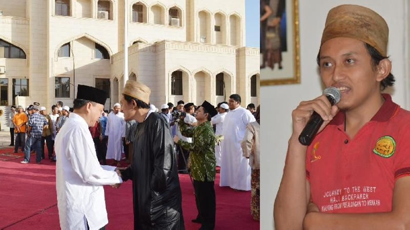 2016年8月28日上午十點鐘,他背負著行囊從爪哇島中部的北加浪岸出發了。 背包裡有一部《古蘭經》、幾件換洗衣服、簡易帳篷、手電筒、睡袋、衛星定位器和一部智慧手機,另外還有數百美元外幣。 他經常穿的綠色體恤衫胸前印有兩行英文字:“邁步去麥加;托靠真主”。 臨出發前,遠近親友前來送別,多數人對他此行成功信心不足,尤其他哥哥無不擔憂地說:“現在改變主意還來得及。” 他對大家的擔心和勸說充耳不聞,連連回答:“一切全托靠在真主上。” 他父親收到當地宗教局打來的電話,要他到辦事處簽署一些檔, 表明對他兒子的行動有家長同意和支持。