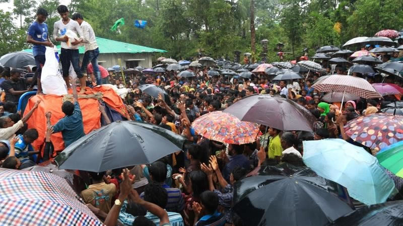 羅興亞難民在孟加拉科克斯巴紮爾(Cox's Bazar)縣等候救援。