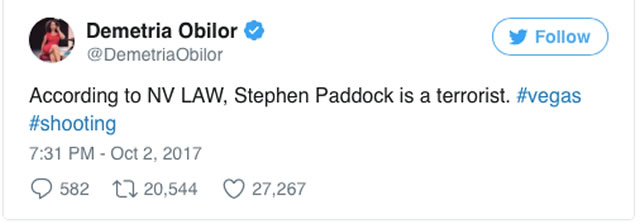 網評截圖:根據內華達州法律規定,史蒂芬•帕多克就是恐怖分子。