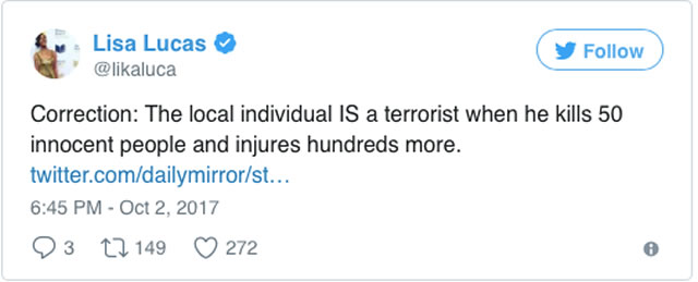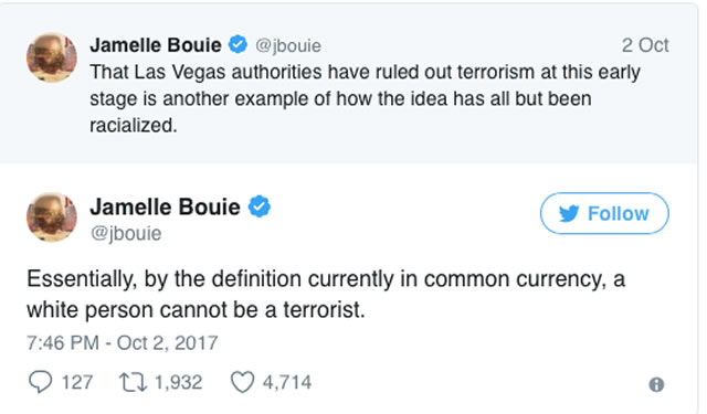 與此同時,雖然此次事件已成為美國史上最嚴重的大規模槍擊事件,然而,不論是政府執法人員是平民百姓,都不願將其次襲擊事件定性為恐怖襲擊,不願將帕多克定性為恐怖分子。對此,不少記者及觀察家都提出了異議。