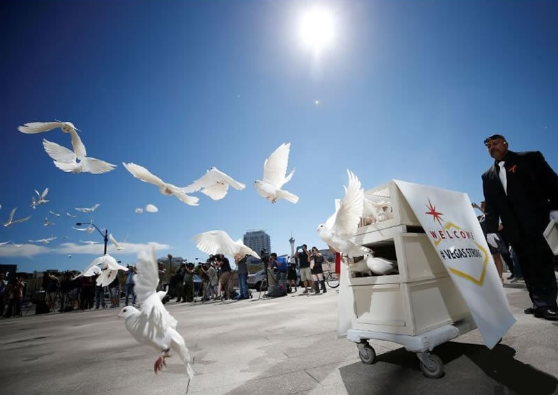 美國民眾放飛白鴿 悼念槍擊案遇難者
