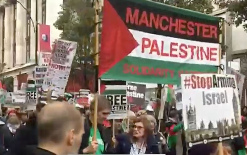 倫敦消息:星期一(11月6日)數千英國民眾上街,在國會前舉行抗議示威,反對在一百年前發表的《貝爾福宣言》,由此引發了延續一個世紀的巴勒斯坦人的苦難深淵和猶太複國主義囂張氣焰。 示威者高舉橫幅和標語牌,要求英國政府承認錯誤,並向在悲慘生活中的巴勒斯坦人民賠禮道歉。 他們聚集在國會大廈前威斯敏斯廣場上,齊聲高呼口號,“給巴勒斯坦人民以自由!”,“結束對巴勒斯坦的佔領!” 這次抗議示威組織者是倫敦穆斯林社團、國際人權協會英國支部、巴勒斯坦人權組織、以及其他宗教團體,是許多單位的聯合行動,根據當地媒體人在現場觀察,參加者至少有三千之眾。