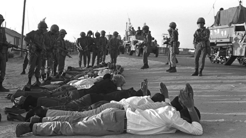 1967年6月5日,以色列對埃及、約旦和敘利亞發動了為期6天的閃電戰。以色列軍隊的勝利,標誌著巴勒斯坦人的“挫敗日”(Naksa Day)的來臨。“挫敗日”也被視為1948年巴勒斯坦“災難日”(Nakba)的延伸。
