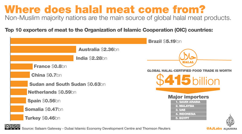 簡而言之,“清真肉”主要來自那些“不清真”的國家。