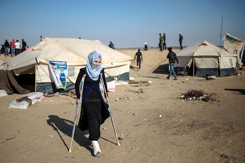 紮哈拉•納賈爾(Zahraa al-Najjar),現年23歲,“回歸大遊行”首日,以色列士兵擊中了她的右腳。
