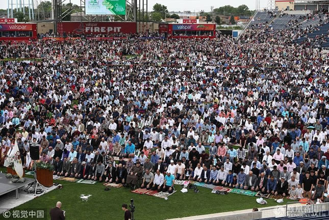 美國芝加哥穆斯林開齋節祈禱 現場人山人海(組圖) 阿立 2018-06-18 23:22:32 瀏覽 當地時間2018年6月15日,美國芝加哥,穆斯林民眾在豐田公園體育場參加開齋節祈禱。 (阿立供稿,文章來源:《文學城》2018-06-18)