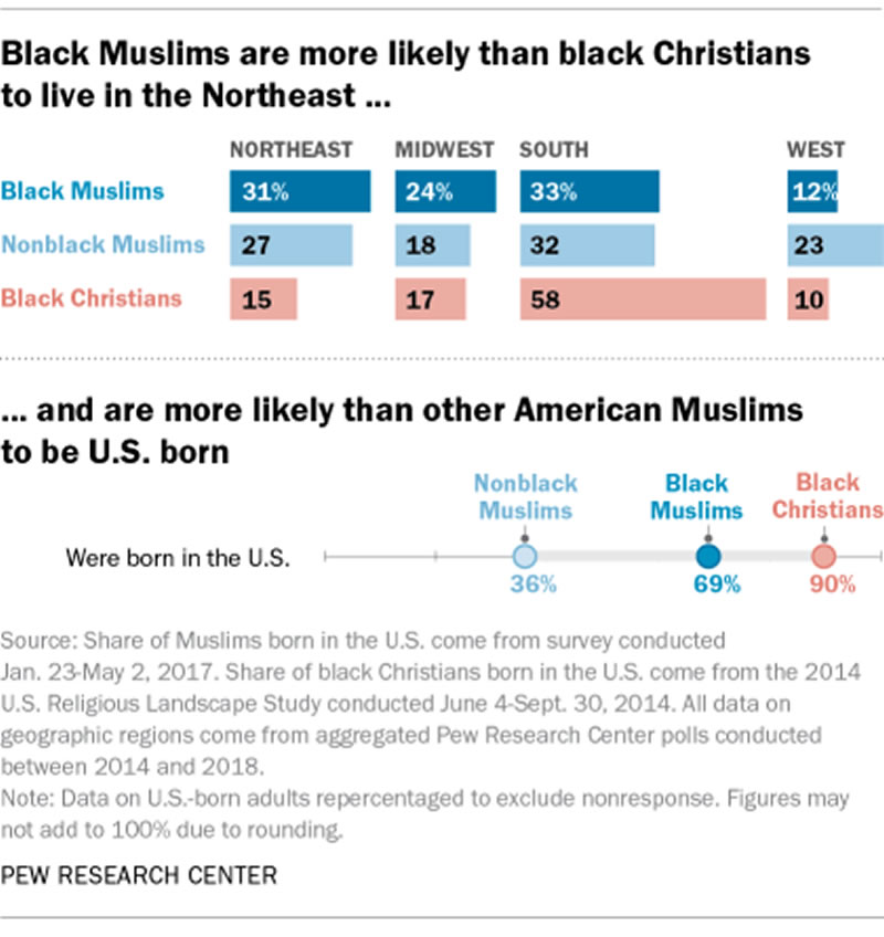 連結:https://www.pewresearch.org/fact-tank/2019/01/17/black-muslims-account-for-a-fifth-of-all-u-s-muslims-and-about-half-are-converts-to-islam/