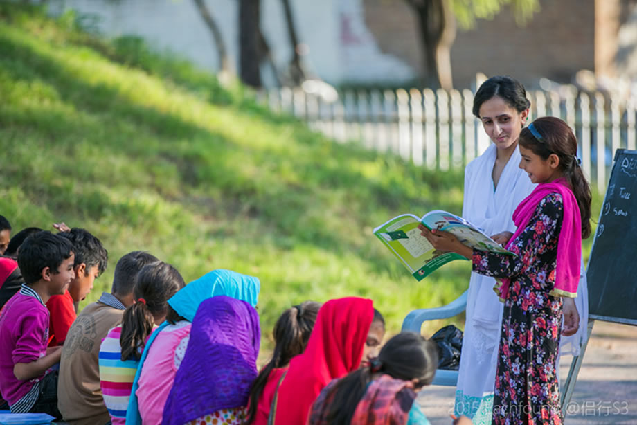 下午三點半,伊斯蘭馬巴德一處街心花園的大樹下坐滿了10歲左右的孩子。有的皺著眉頭托著腮,有的做筆記還犯嘀咕,不過多數時間,他們還是會望向那位正在大聲講課的先生。