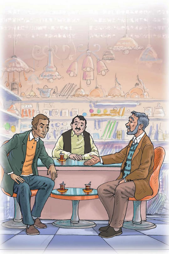 走到一家電器店的門口時,店主人納吉布·烏斯塔對哈桑老師招呼道: “請進來坐一會兒吧,老師!喝杯茶吧。今天您在聚禮上的講話多好啊一一最終人們要擁有信仰才能獲得拯救!但是我還有一兩個問題要問,您要是沒有急事,就請在這裡坐一會兒吧。