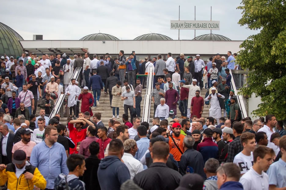 克羅地亞札格雷布市,穆斯林陸續抵達札格雷布清真寺參加古爾邦節會禮
