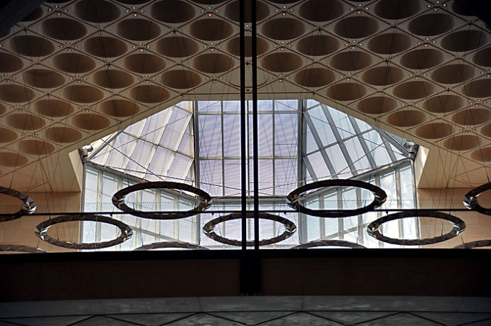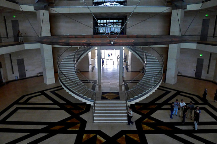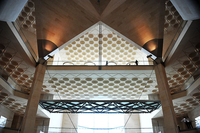伊斯蘭藝術博物館位於卡塔爾杜哈的一個人工島嶼上,占地4萬5平方,是迄今為止最全面的以伊斯蘭藝術為主題的博物館。白色石灰石幾何式的疊加成伊斯蘭的風格建築。這是貝聿銘最後一個文化專案,耗資三億美元。建築外部在2006年完成,經過兩年多是準備,2008年12月1日正式開館。內部除了展示來自世界各地的各種伊斯蘭藝術品,它們來自三大洲,橫跨了7世紀到19世紀的時間長河。還包括圖書館、餐廳等功能空間,開館時馬友友曾經參加過的表演。伊斯蘭藝術博物館已被視為卡塔爾新的國家標誌。