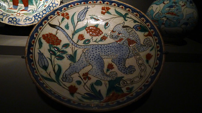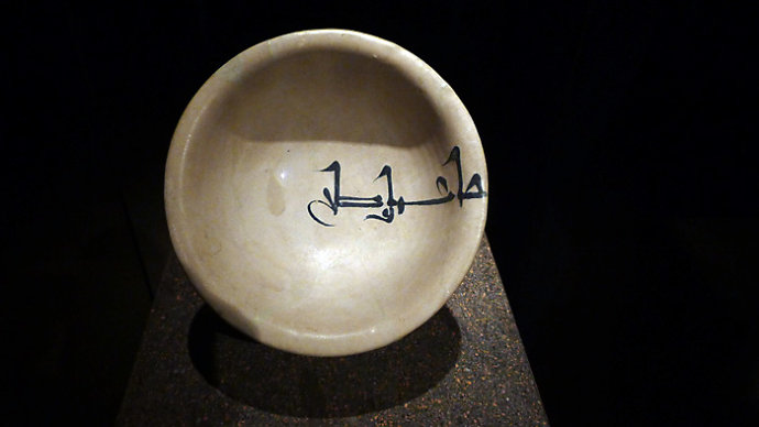 在所有的藏品中,最突出的是9世紀來自伊拉克的白色陶瓷碗,上面有Kubic鈷藍色字體題詞。題詞意思是:人類的一切勞動創造都是有價值的。俺就是用這碗的圖片形象做俺微博頭像很長時間,喜歡這句話。