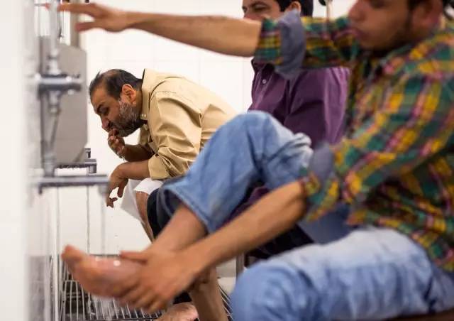 在萊買丹月第一個聚禮日(或稱主麻日Jumah),穆斯林在東倫敦清真寺洗小淨,準備參加聚禮。
