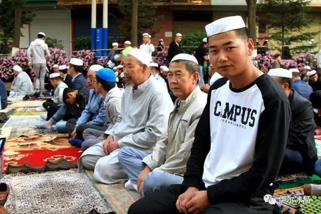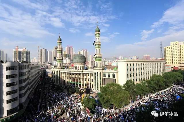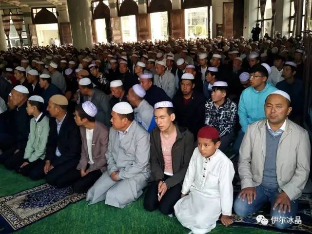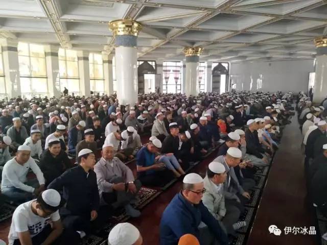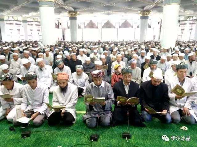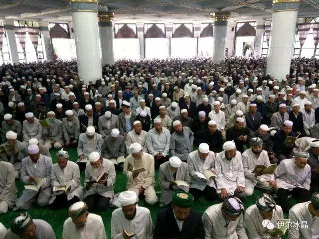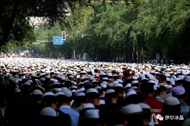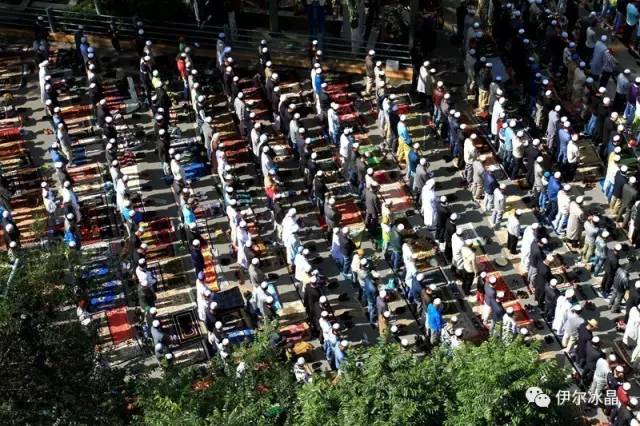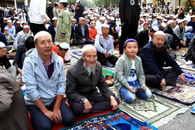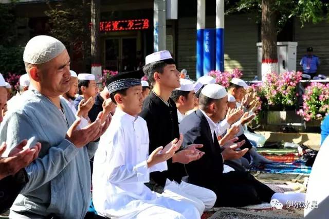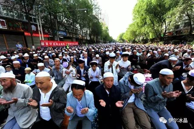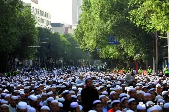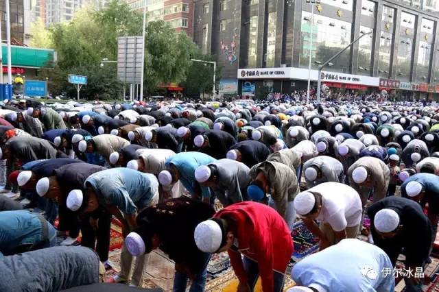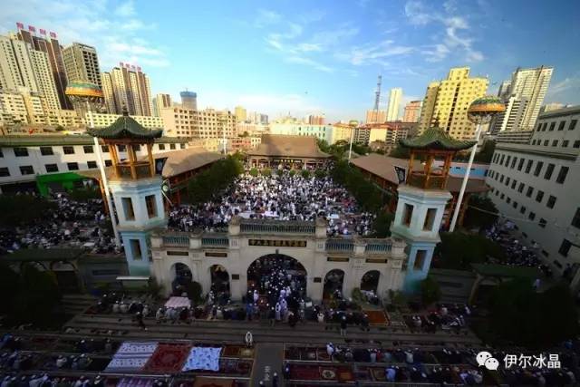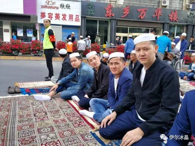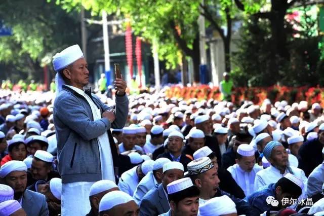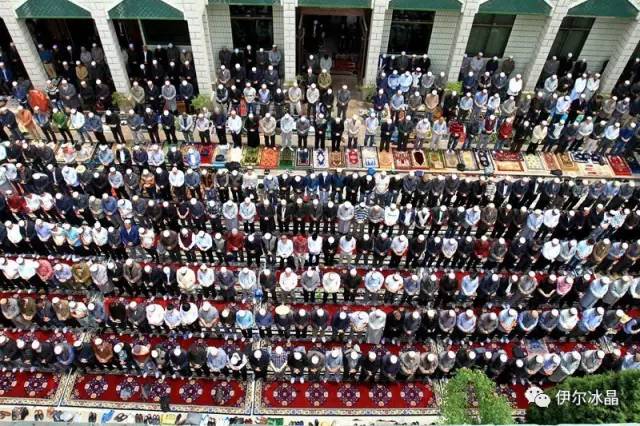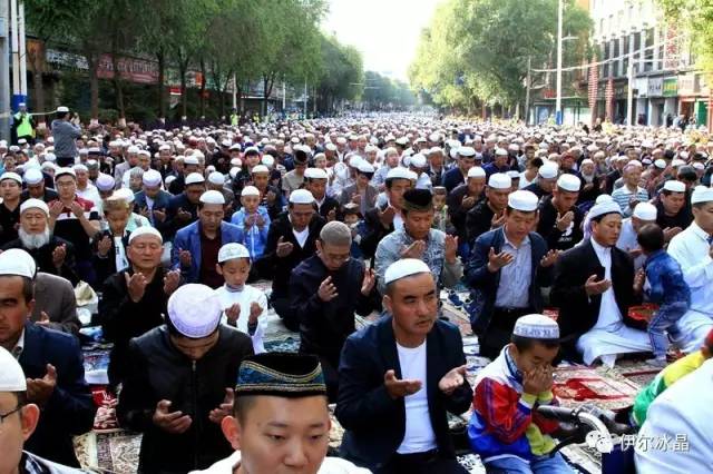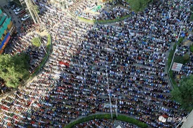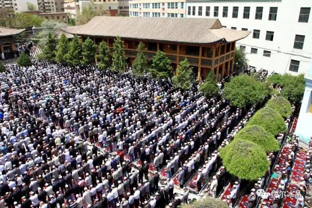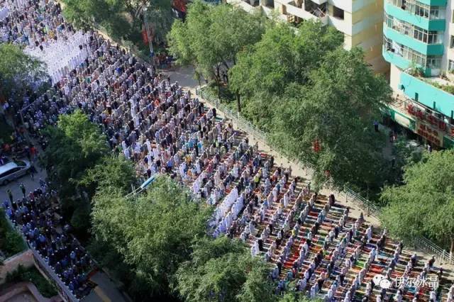 晴空下、驕陽中,東關大街、下南關、共和路(部分路段)、大眾街、建國路(部分路段),舉目遠望,密密匝匝,白茫茫全是歡樂的人洋。隨著領拜伊瑪目抑揚頓挫的“古蘭”誦讀聲,鞠躬、叩頭,人海動作整齊劃一,一舉一動無不彰顯著伊斯蘭中正寬容、博愛自律的胸懷。