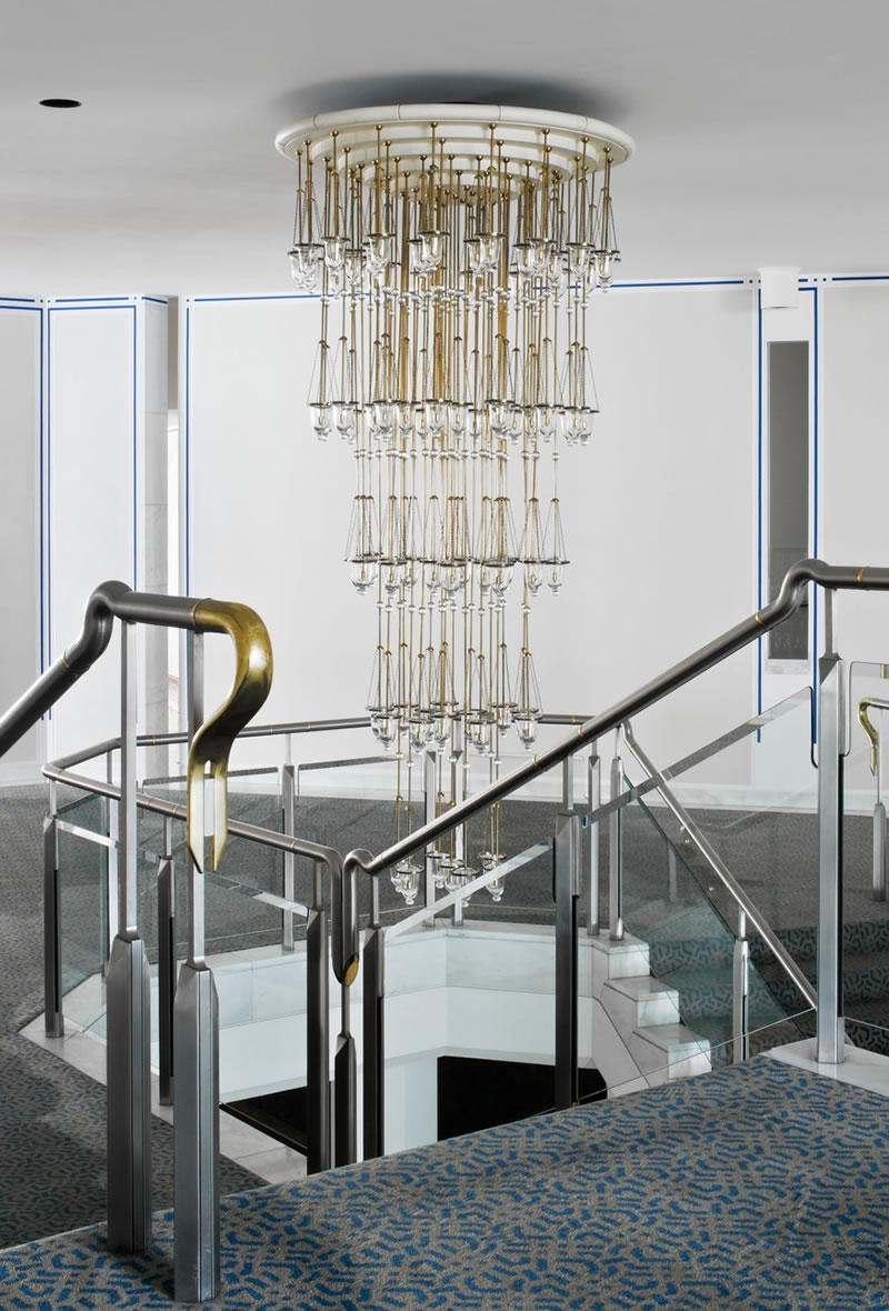 易司馬儀裡清真寺樓梯設計,中心位置為主吊燈。