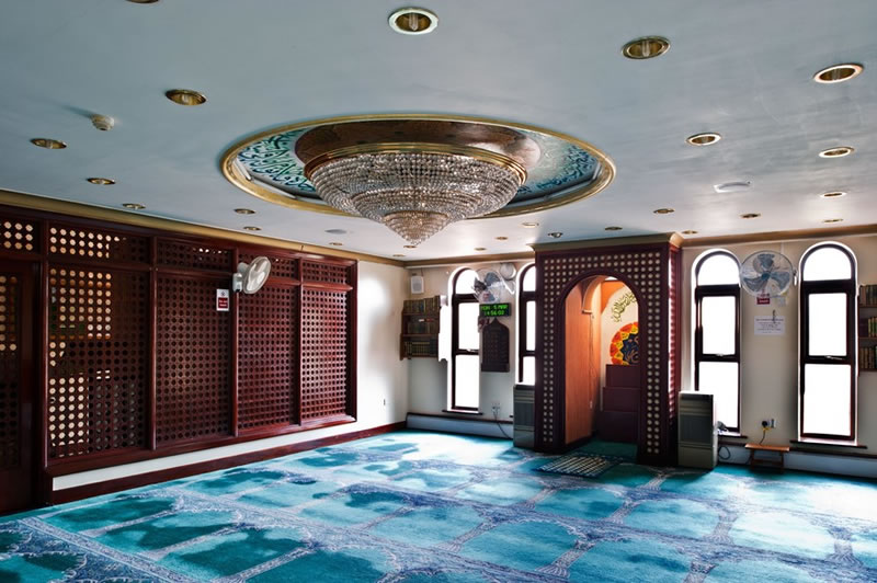 金斯頓清真寺男士禮拜殿內景。