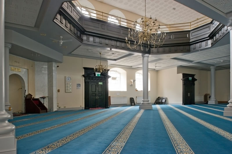 英國伊斯蘭中心禮拜殿內景。
