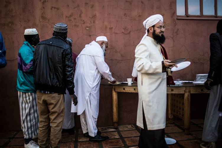 普利托里亞先知清真寺,當地穆斯林民眾參加開齋節會禮之後在清真寺享用糕點。