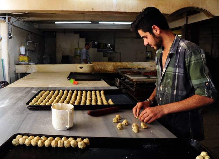 一名敘利亞男子正在製造當地特色甜點,迎接開齋節的到來。