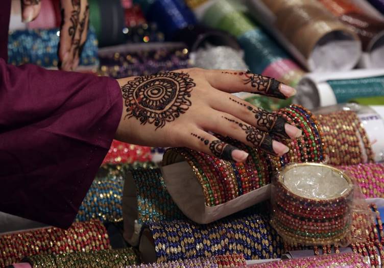 塗抹海娜喜迎開齋節的巴基斯坦婦女購買特色手鐲。