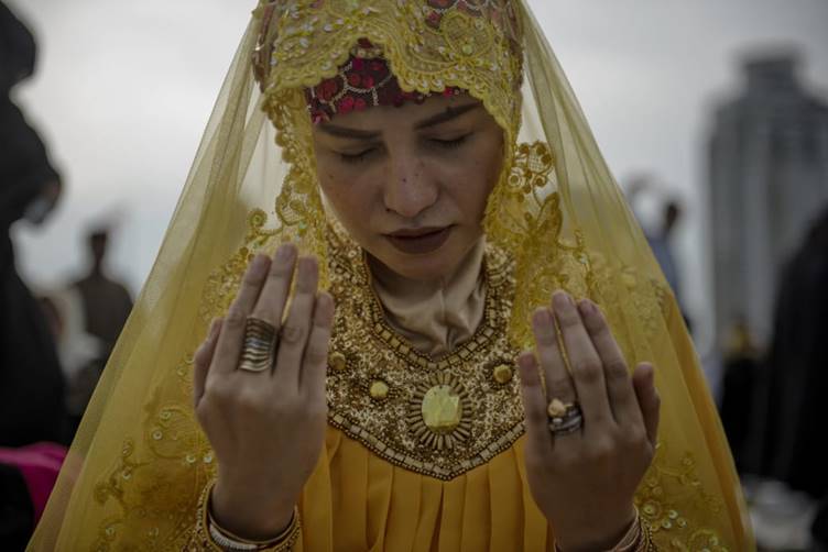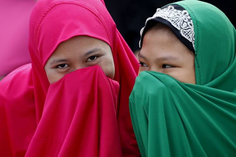 一名菲律賓穆斯林女子在馬尼拉公園參加開齋節會禮。