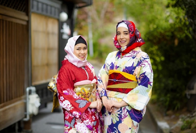 這家名為“夢館”的和服店位於日本京都,據瞭解,該店主要面向國外遊客,此番推出穆斯林和服,是為吸引更多穆斯林遊客。