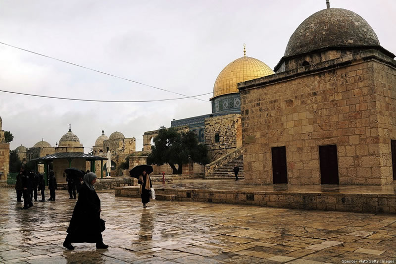 根據聯合國決議,阿克薩清真寺永遠屬於穆斯林。但自從被以色列人佔領以來,猶太極端份子製造無數事端,堅持說阿克薩清真寺地下是猶太人祖先所羅門(阿拉伯語“蘇萊曼”)建造的猶太神廟,稱阿克薩為“聖殿山”,是將來迎接救世主“彌賽亞”(阿拉伯語“麥西哈”)從天而降的地點。