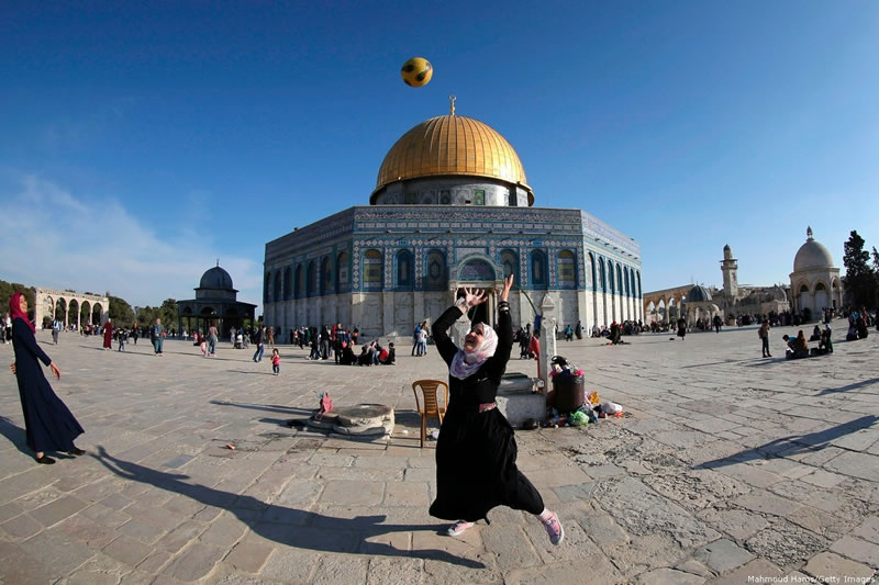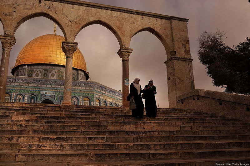 穆斯林女子漫步在阿克薩圓頂清真寺廣場