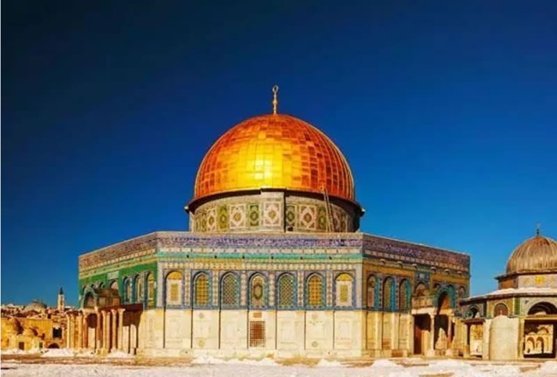 阿克薩清真寺為古代先知蘇萊曼所建,在第二任哈裡發歐麥爾時期(西元705年)得以重修。