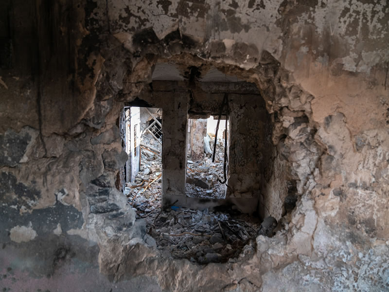伊斯蘭國武裝分子在在建築物內部炸開大洞,以方便他們轉移行動,躲避空襲。
