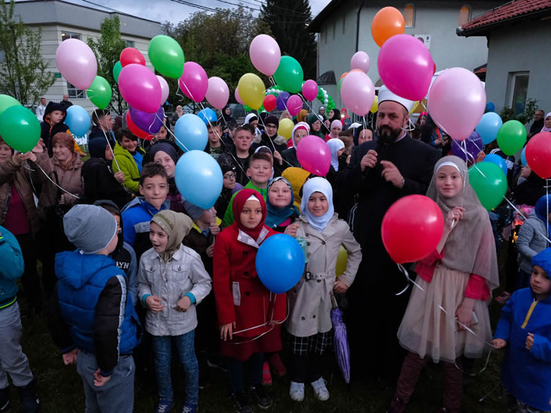 波士尼亞-黑塞哥維那首都塞拉耶佛,穆斯林孩童手持氣球歡慶萊麥丹齋月的到來。