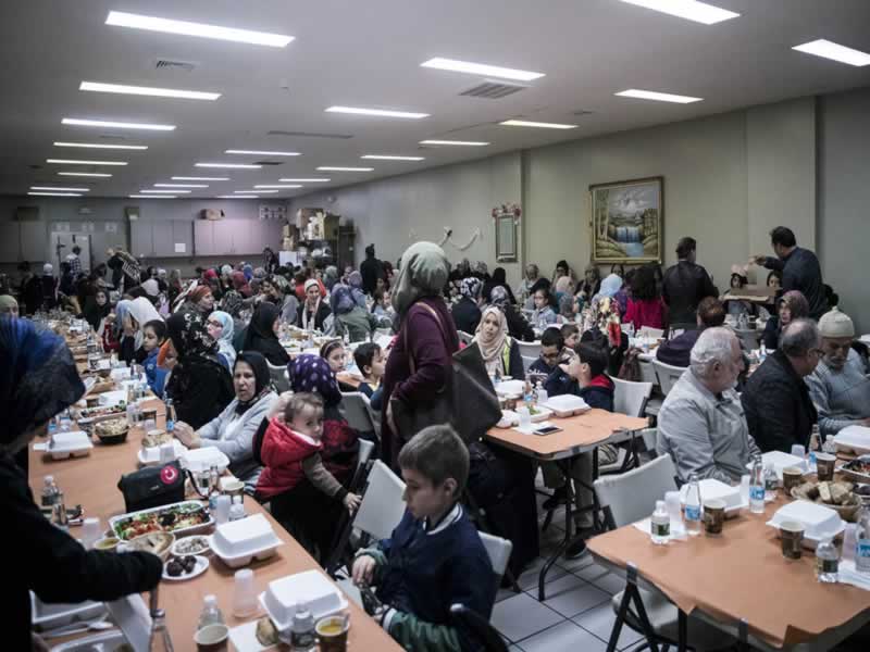 美國新澤西州,民眾在烏魯清真寺共用開齋美食。