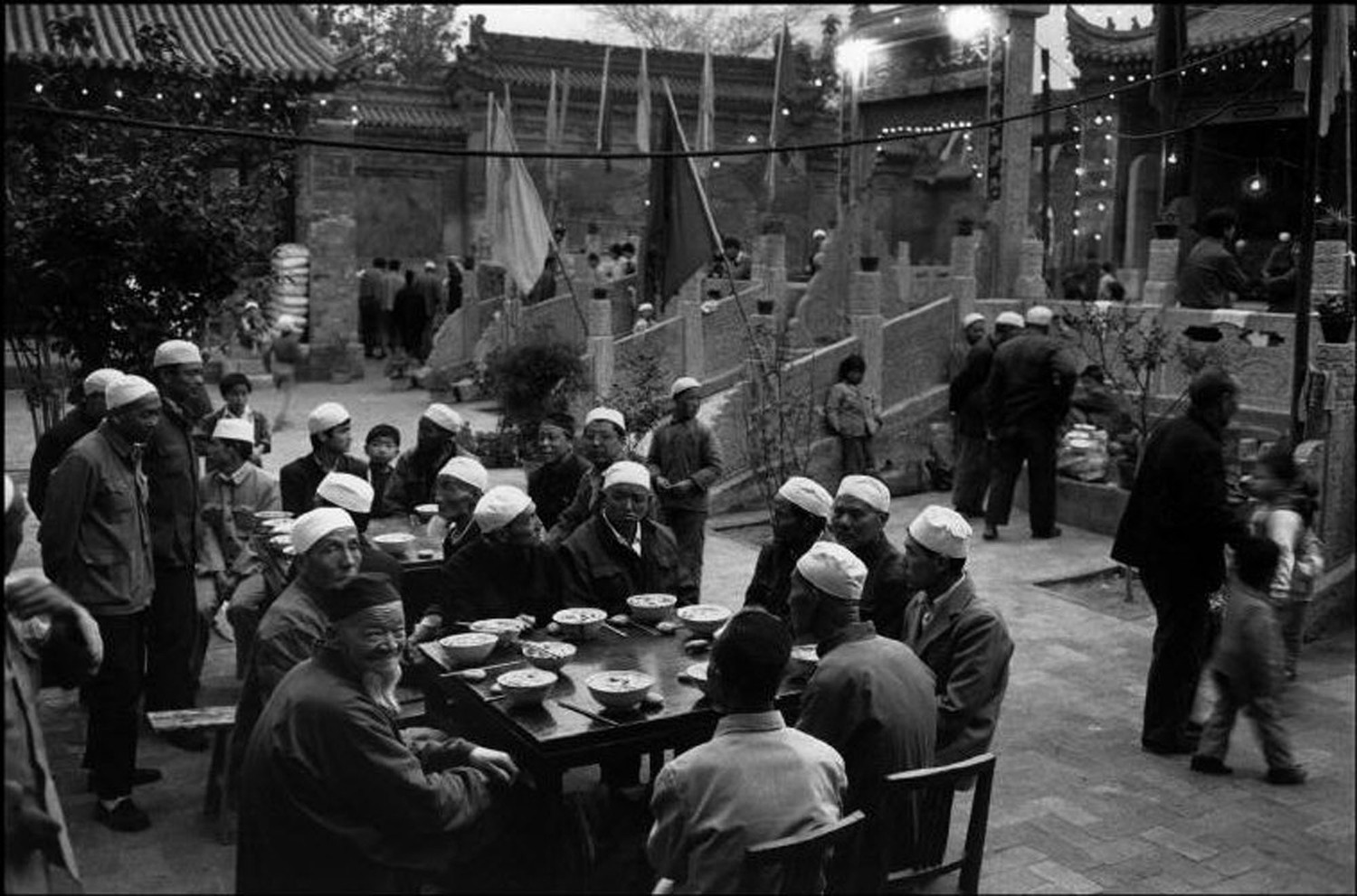 1989年,中國西安,穆斯林在化覺巷清真大寺等候傍晚開齋時分的到來。
