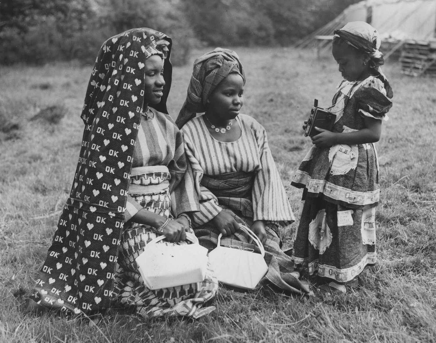 1953年6月14日,英國沃金市,一名穆斯林小女孩在開齋節慶祝儀式為兩名穆斯林少女拍照留念。